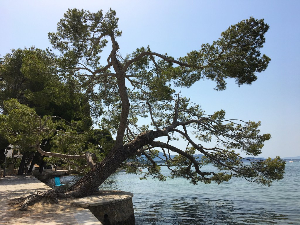 Men annars! En resa med så många förhinder kan inte bli mycket bättre än så här. Platsen är vacker. En pinjekantad strandpromenad och turkost vatten. Fina gamla hus vid strandpromenaden. Vädret är också vackert. Vinden är ljum och vattentemperaturen behaglig. Och vi har det trevligt tillsammans.