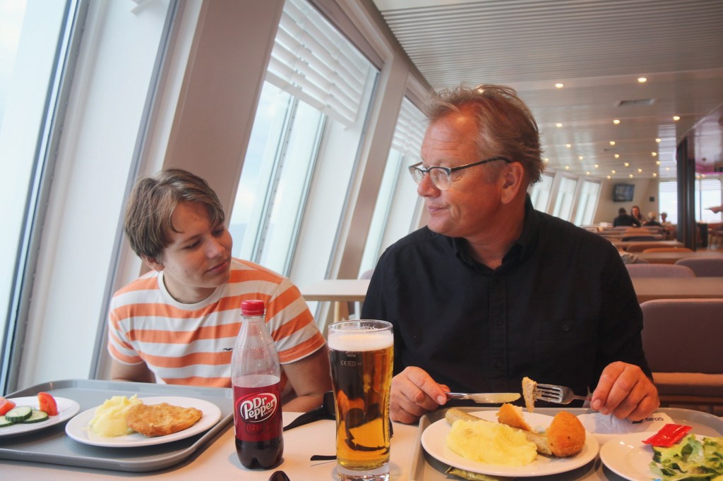 Denna visade sig sedan faktiskt vara betydligt fräschare än vi vågat hoppas på. Efter att ha installerat oss i hytten valde vi att gå upp på däck och följa färjans avresa från Stilleryd, innan vi gick för att äta vår förbeställa kvällsmat.