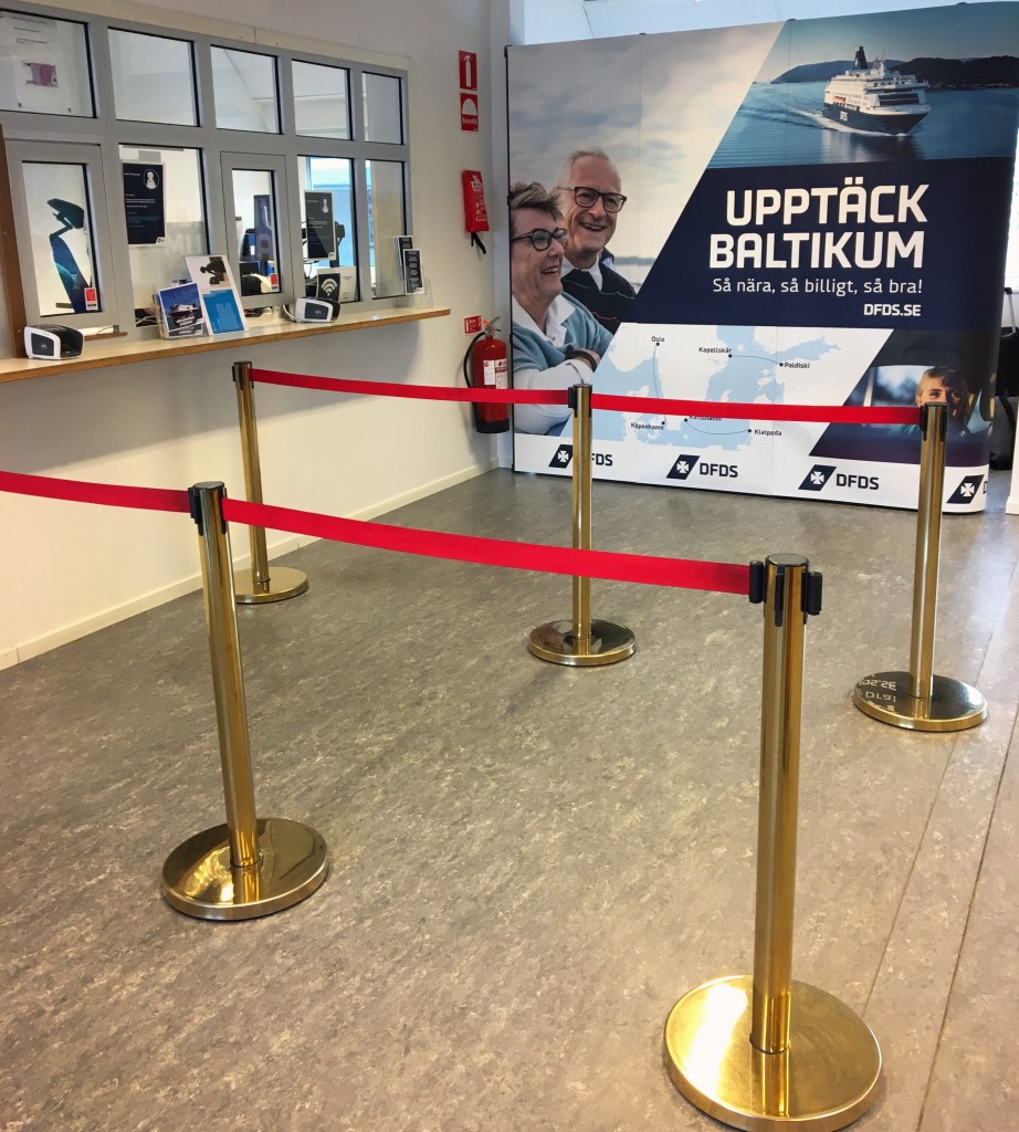 Vi valde att resa utan bil, trots att det inte hade blivit alls mycket dyrare att ta med bilen. Mest för att slippa köra i Litauen. Vi parkerade därför vår bil utanför DFDS:s lilla färjeterminal i Stillerydshamnen. Vi fick en p-biljett att lägga i bilens framruta i samband med incheckningen.