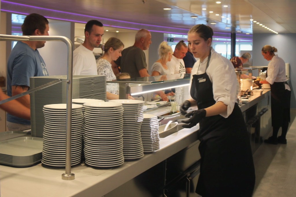 Även om den här färjan främst är till för lastbilar och de flesta av passagerarna därmed är lastbilschaufförer så finns det ett visst utbud även för andra kategorier av passagerare. Så finns det till exempel en liten lekhörna för småbarn vid caféet.