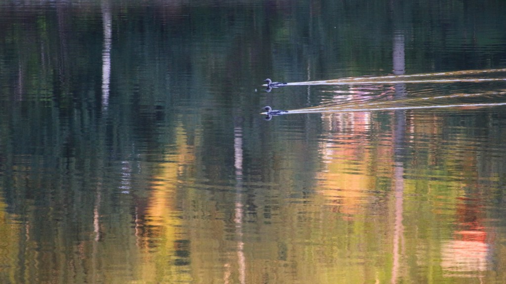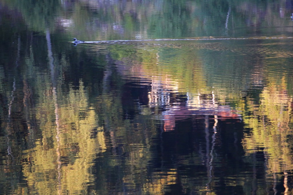 När lommen simmar över sjön Näknen bildas streck över sjön likt de streck som bildas på himlen efter flygplan.