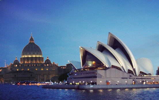 Översta bilden i inlägget är ett fotomontage av två av mina egna bilder föreställande Peterskyrkan i Vatikanstaten i Rom respektive operahuset i Sydney.