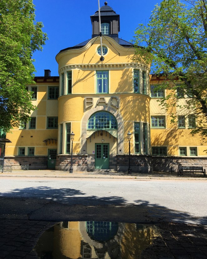 Mitt emot stationen i Karlskrona ligger badhuset.