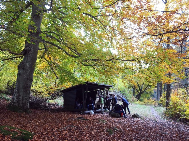 Vi hade lite otur med vädret som var igenmulet efter ett ganska kraftigt regn på förmiddagen. Ändå blev det en väldigt fin vandring i långsamt tempo för att undvika att halka omkull på de blöta löven. Något som också passade min ömmande rygg. Det blev nära 12 km vandring på lördagen.