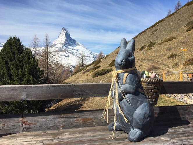 Matbordet i den lägenhet vi hyrde i Zermatt. Påskägg och iste hade vi med oss. Resten ingick.