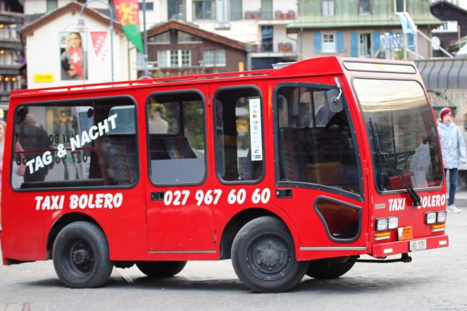 För resor inom Zermatt är det taxi i form av elektrisk minibuss som gäller.