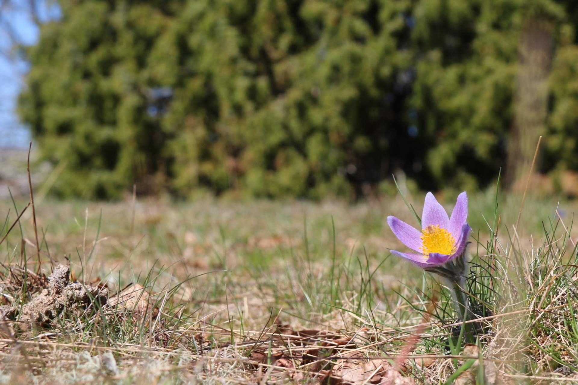 I Valje naturreservat finns vitsippebackar med havet i bakgrunden.
