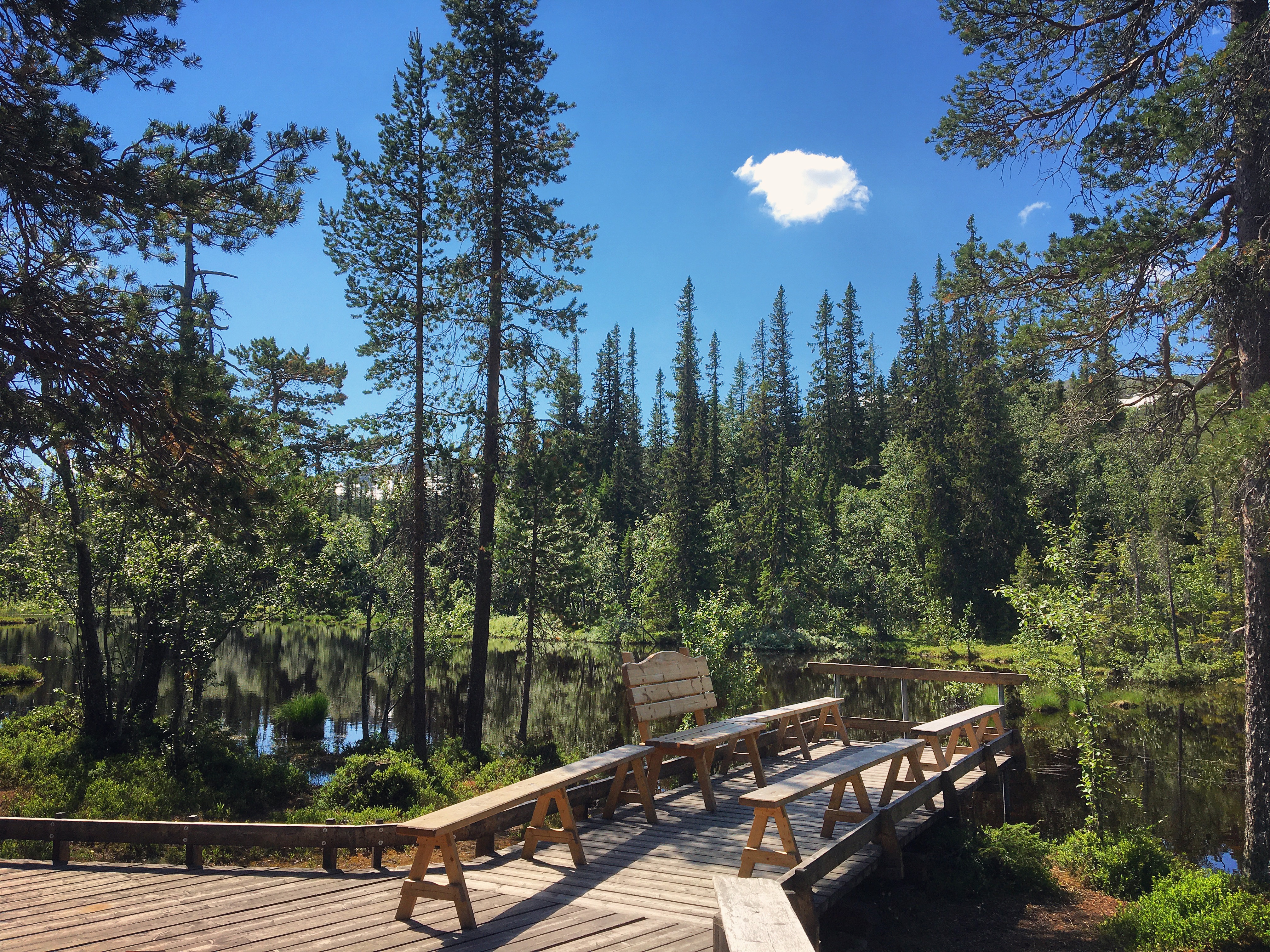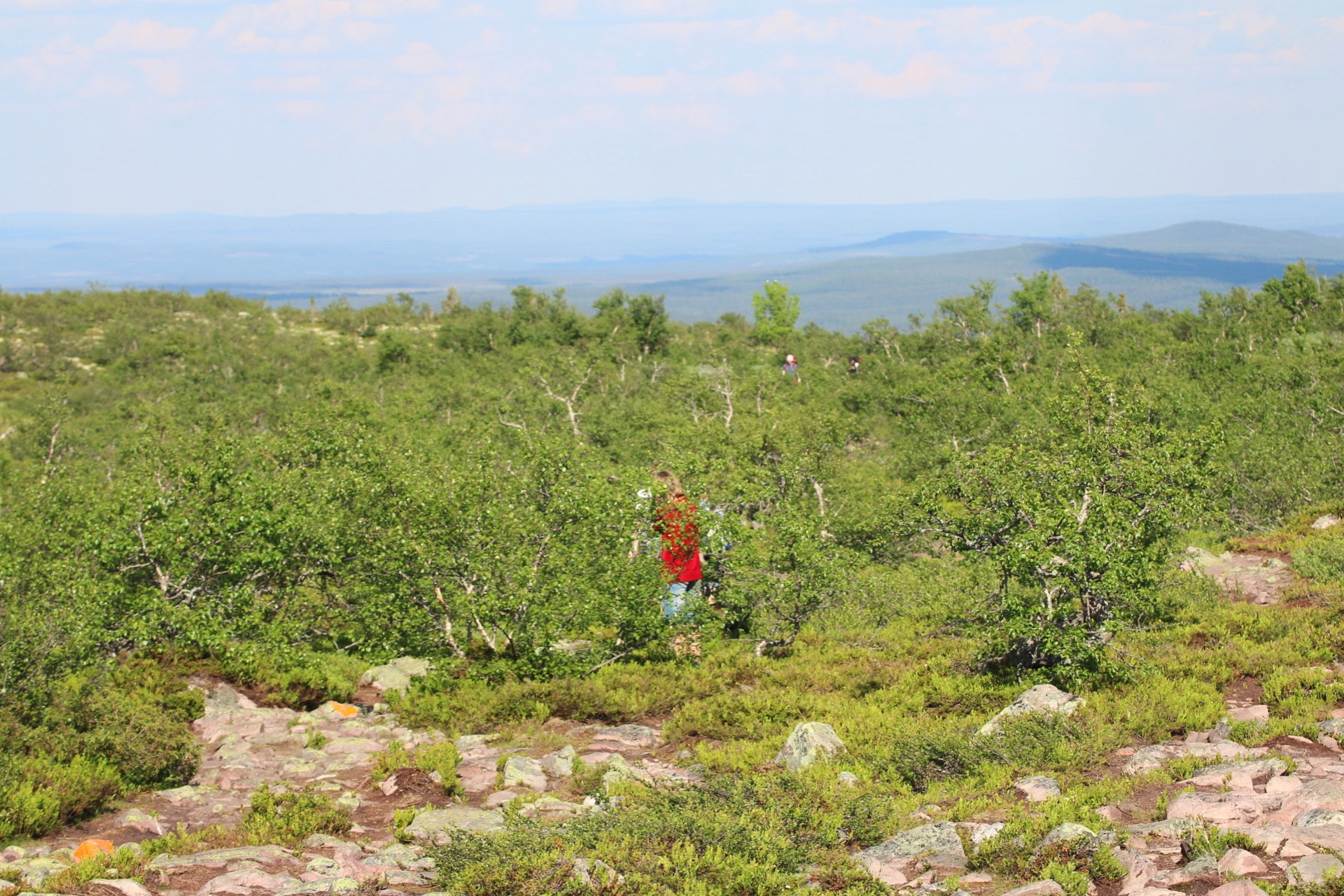 Vandringen hit är tre och en halv kilometer från parkeringen och huvudentrén till Njupeskär. Sju kilometer fram och tillbaka. Första biten går leden i gemensam sträckning med Njupeskärsleden (om du går den medurs), men sedan ska du följa skyltningen mot Rörsjöstugorna och vika av mot sydväst och efter ytterligare en bit börjar det stiga brant uppför. Riktigt, riktigt brant. Stigningen är nog ungefär samma 100 meter som drygt Njupeskärsfallets fallhöjd en bit bort.