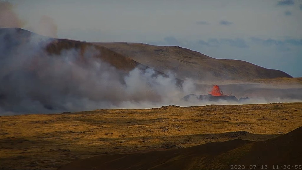 Eftersom området närmast utbrottet bedöms vara avstängt för allmänheten till åtminstone den 15 juli så är det säkraste sättet att se utbrottet på närmare håll faktiskt att göra det via webbkamera hemifrån soffan eller så. Se skärmdump längst ner i detta inlägg.