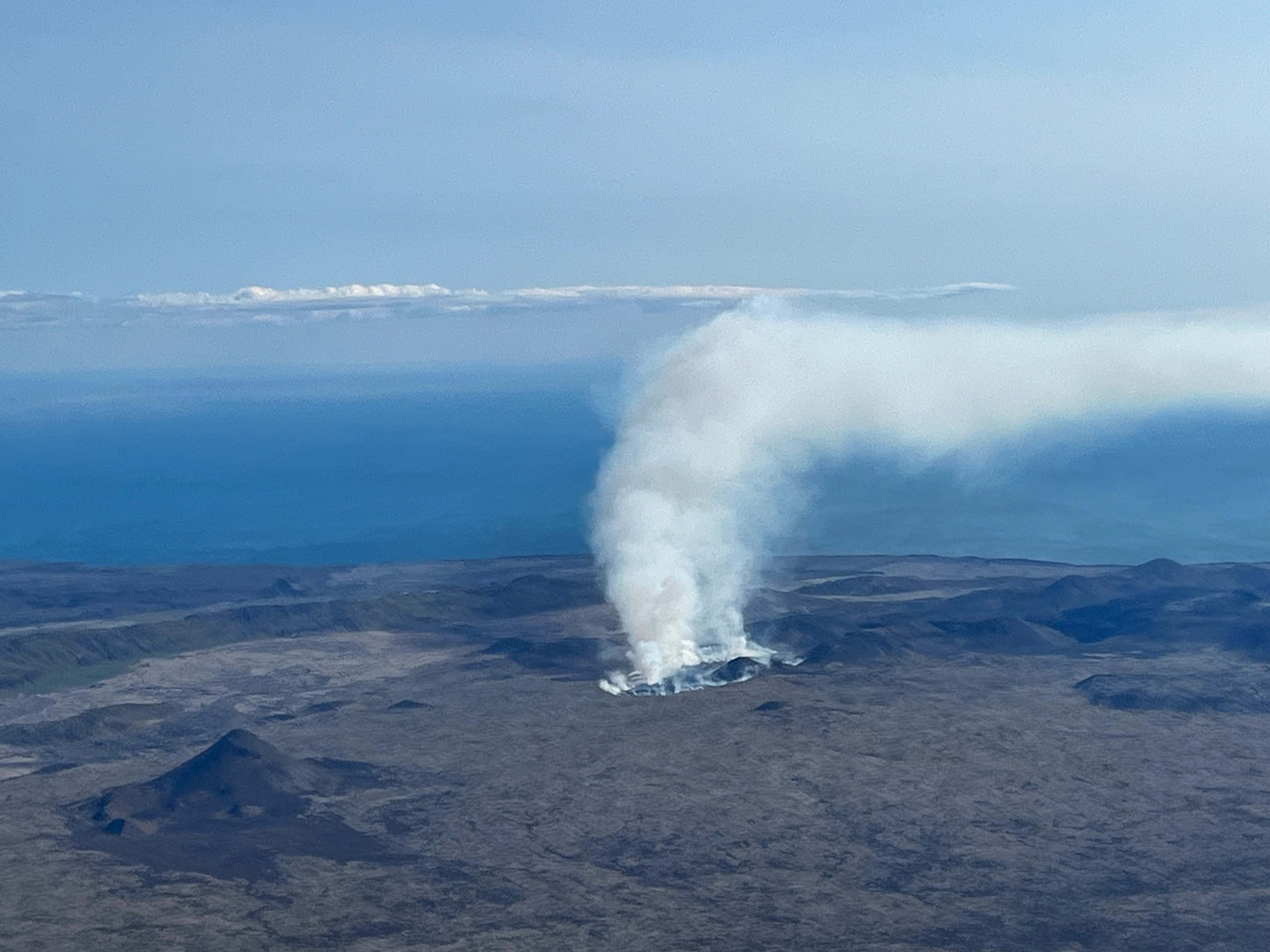 Och mycket riktigt. På måndagskvällen den 10 juni när vi är på promenad in mot stan för att äta kvällsmat nås vi av nyheten att vulkanutbrottet har börjat. Det sker längs en 200 meter lång ny spricka nära den plats där utbrotten skett de föregående två åren. Myndigheterna varnar för att gaserna är giftiga och meddelar att vissa vägar har stängts av. De goda nyheterna är att röken, så här långt, inte innehåller några större mängder aska, vilket innebär att flygtrafiken fortsätter som planerat. Och att vägen till och från flygplatsen inte finns med bland de avstängda vägarna.