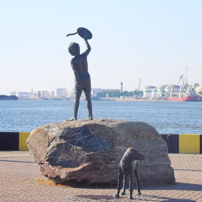 Den här skulpturen heter egentligen ”En barndomsdröm” och den finns vid terminalen för kryssningsfartyg i Klaipėdas hamn. Den föreställer en liten pojke som viftar med sin mössa år fartygen och pojkens valp. Den dök upp på terminalen sommaren 2007.