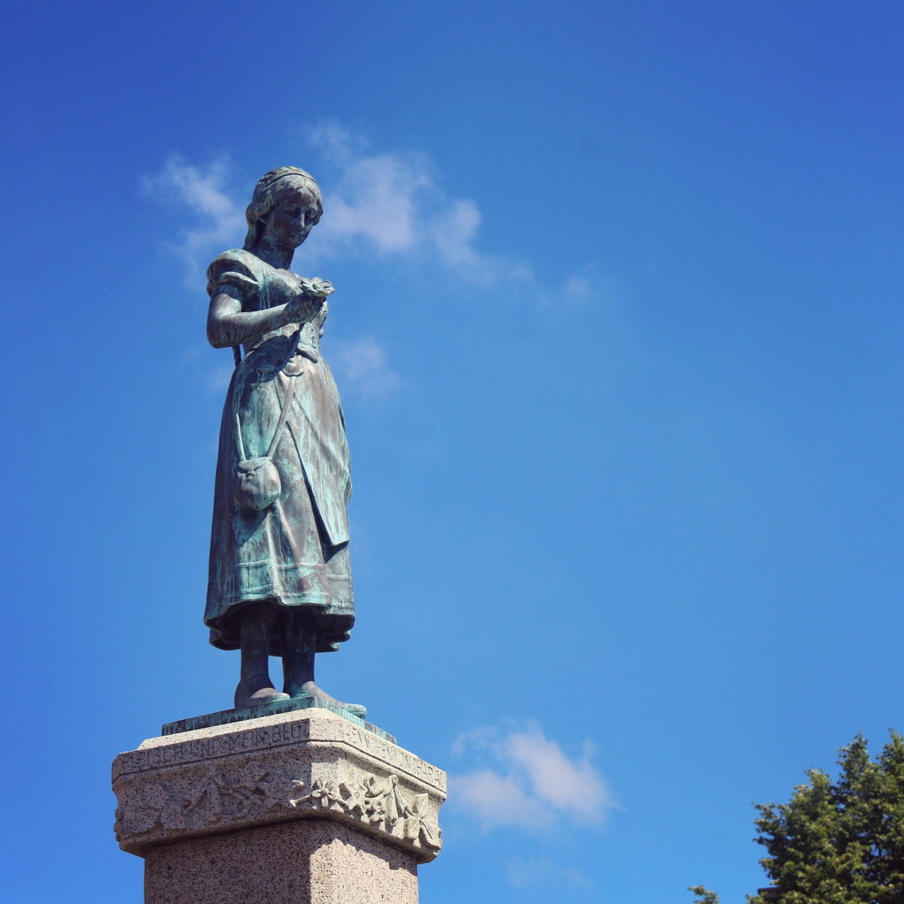 Den 1,6 meter höga bronsskulpturen står på en 1,4 meter hög sten.