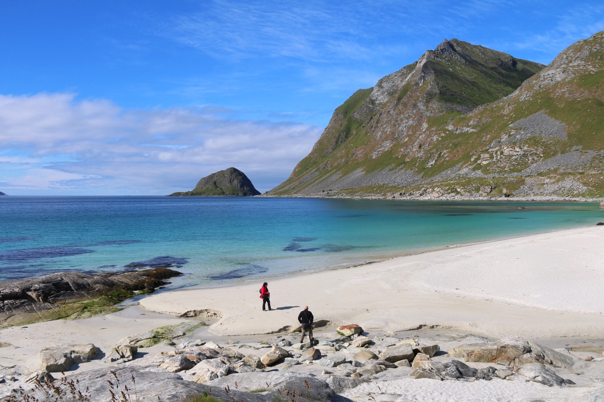 Bilden föreställer Hauklandstranden på Lofoten i Norge.