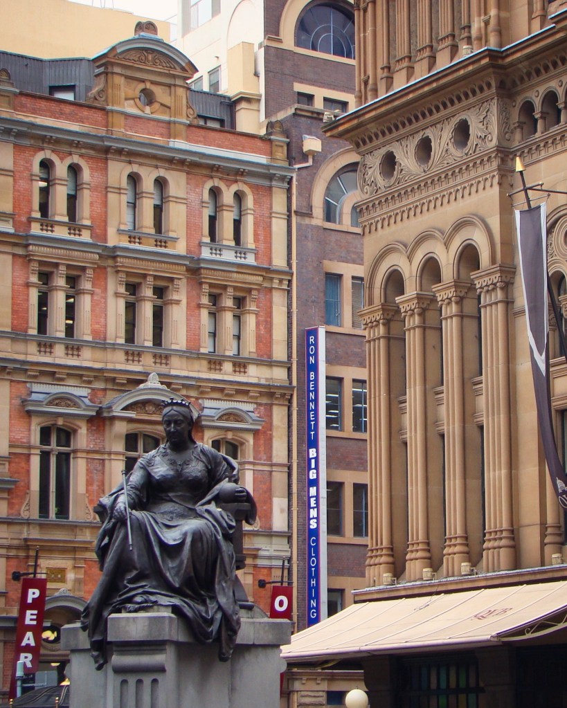 Statyn i brons av drottning Victoria som finns framför QVB gjordes av John Hughes 1908 och placerades ursprungligen i Dublin. Där stod den fram till 1947, då den togs ner. Den gavs senare till folket i Sydney av Irlands regering och placerades på dess nuvarande plats 1987.