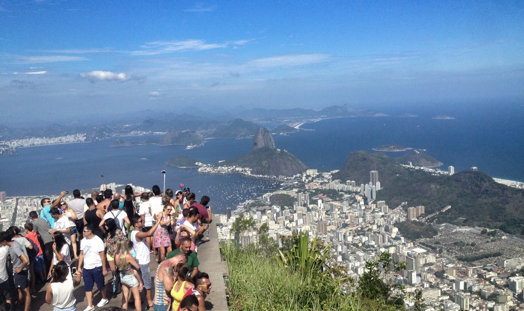 Jesusstatyn i Rio de Janeiro är ett gränsfall. Jag är ändå glad att vi åkte upp dit. Vi tog en taxi till bergbanan ”trem do corcovado” som det heter på portugisiska och hade tur att slippa långa köer till biljettförsäljningen. Väl uppe var utsikten precis så fantastisk, trängseln så stor och selfiefotograferandet så frekvent som man någonsin kunnat föreställa sig. (Översta bilden i inlägget.) Men själva statyn är egentligen inte så märkvärdig på nära håll. Och inom några år kan det vara helt meningslöst att försöka åka upp dit. Just på grund av trängseln.