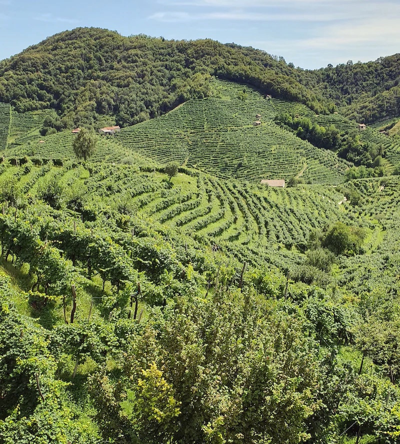 Kulturlandskapet runt småstäderna Conegliano och Valdobbiadene, som båda ligger i Veneto, kännetecknas av speciella kullar (ciglioni) som har terrasserats och omvandlats till vingårdar sedan 1600-talet. Användningen av ciglioni har sedan dess skapat ett speciellt schackbrädelandskap bestående av rader av vinrankor som växelvis löper parallellt eller vertikalt med sluttningarna. På 1800-talet bidrog en ny teknik att beskära vinstockarna till landskapets estetiska egenskaper. Regionen producerar det mousserande vinet Prosecco.