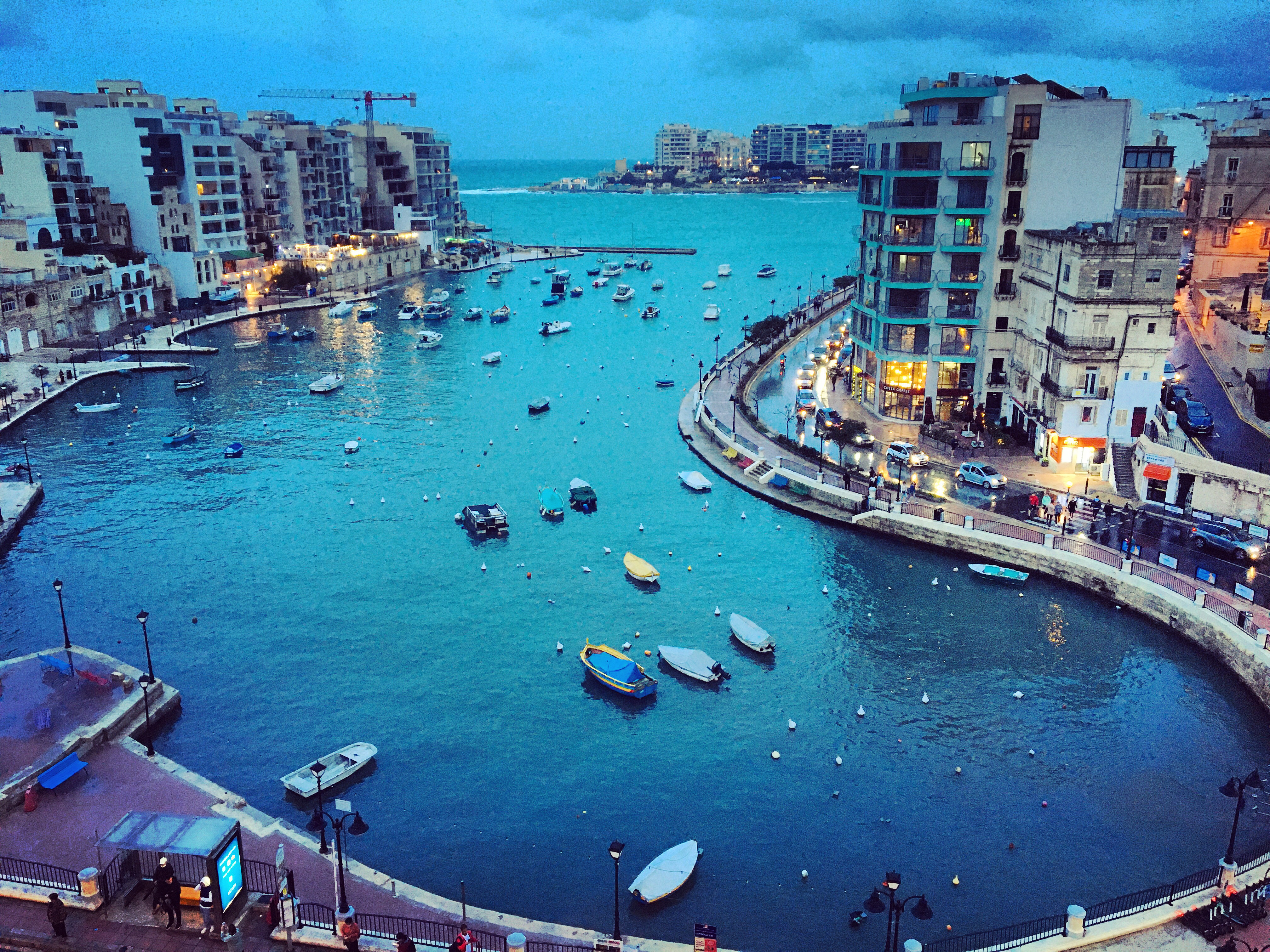 Bland det första jag gjorde sedan vi checkat in på Hotel Juliani vid Spinola Bay på Malta var att gå ut på balkongen. Utsikten tilltalade mig direkt, men vädret var inte lika förtjusande. Regnet hängde i luften, och de första dropparna började falla. Jag skyndade mig upp för att hinna se hotellpoolen innan regnet öste ner, men jag hann inte. Himlen öppnade sig över mig.