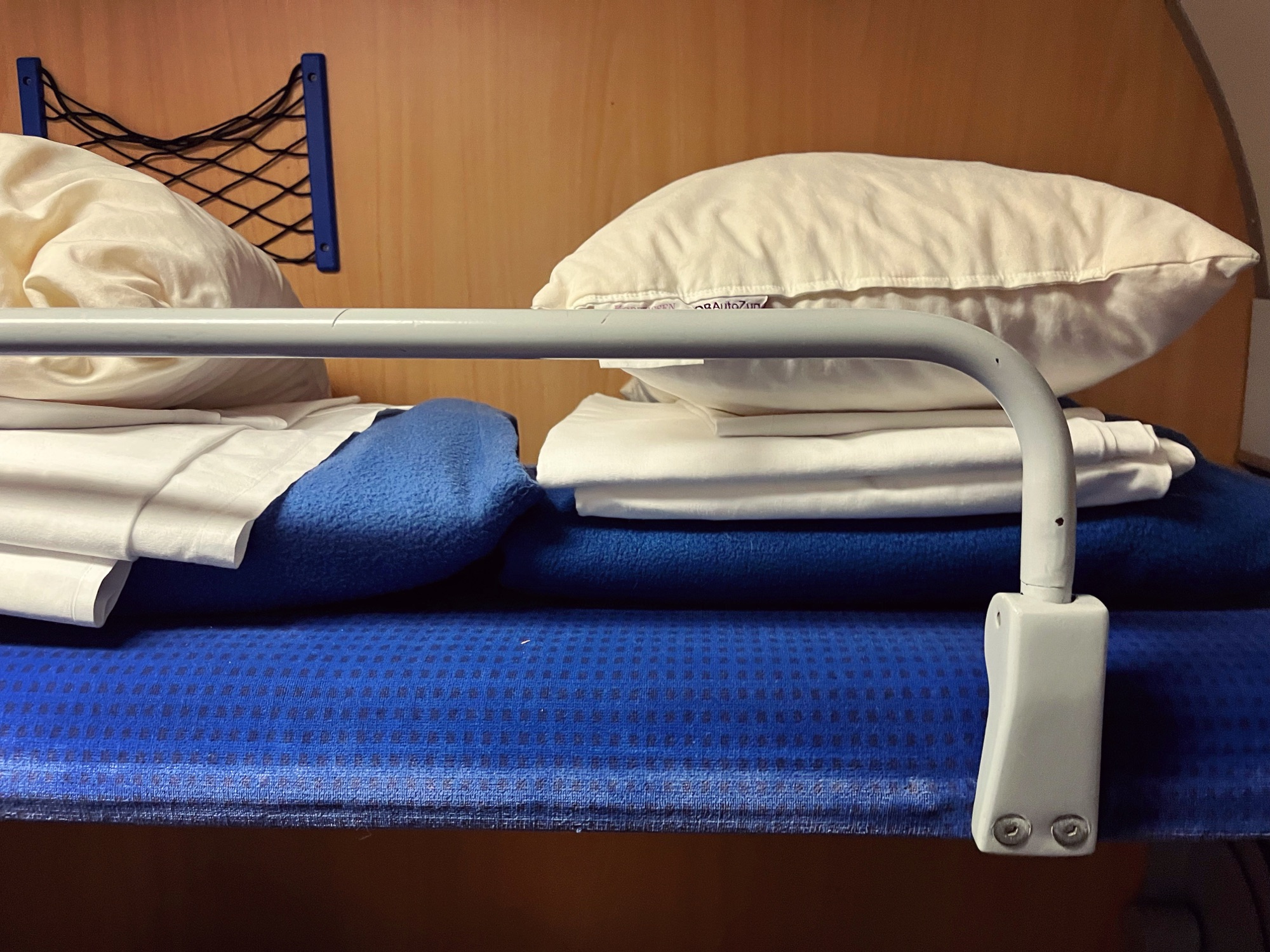 Resan ner gjorde vi på måndagsnatten med SJ:s nattåg som går hela vägen från Stockholm och flera stationer längs södra stambanan till Hamburg och Berlin. Vi klev på i Hässleholm, dit tåget var över en timme försenat, och klev av i Hamburg dit tåget var 50 minuter försenat. Jag blev något förvånad över hur pass gammalt och slitet tåget kändes. Vi försökte sova så gott det gick i en hel, egen liggvagn för oss fyra, som dock var ockuperad av två andra passagerare som vi tvingades köra ut när vi klev på.