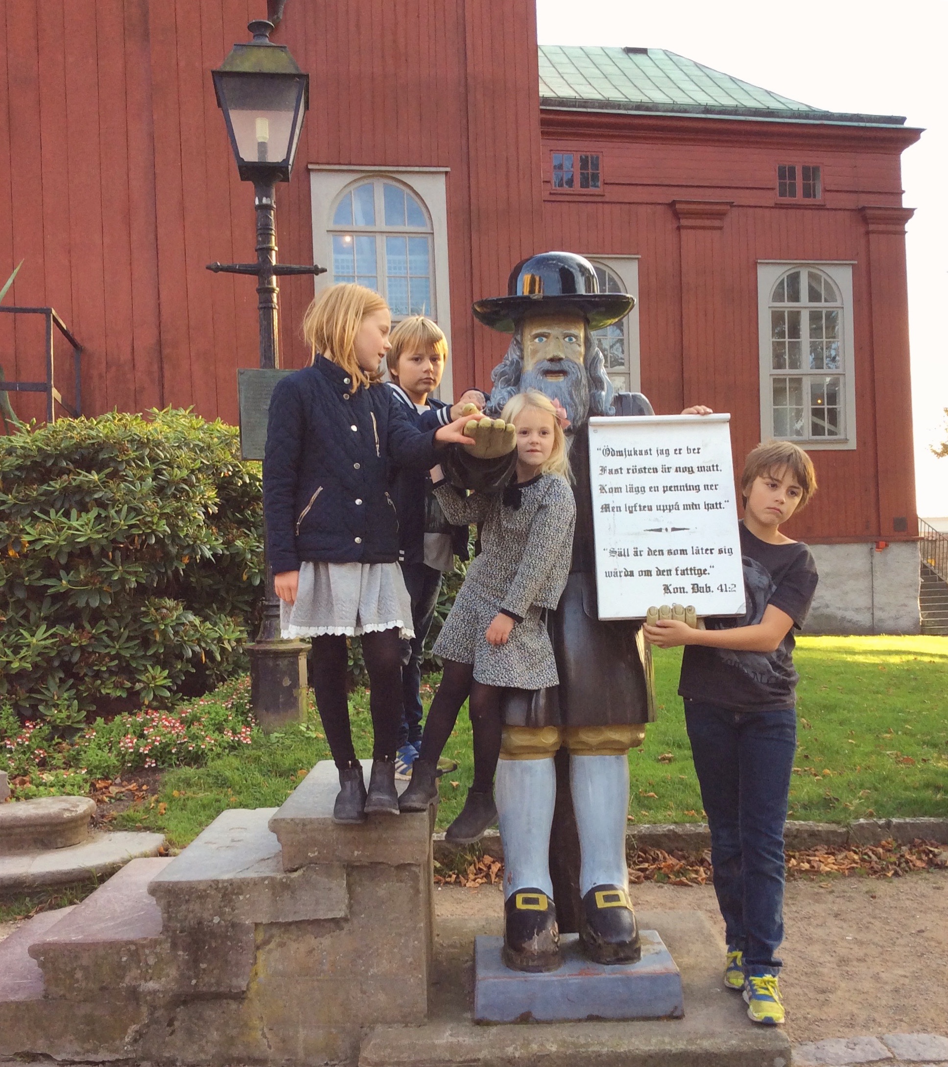 Fin guidning med intressant text och många fina bilder. Den där lilla Nils Holgerssonstatyn, så härlig bild med sonen och parveln! När vi hade flyttat till Sverige skickade mormor oss Nils Holgersson på finska. Kyrkorna är imposanta, som antika tempel. Kungsholms fort skulle jag gärna vilja besök med dess runda hamn. Vi får se.