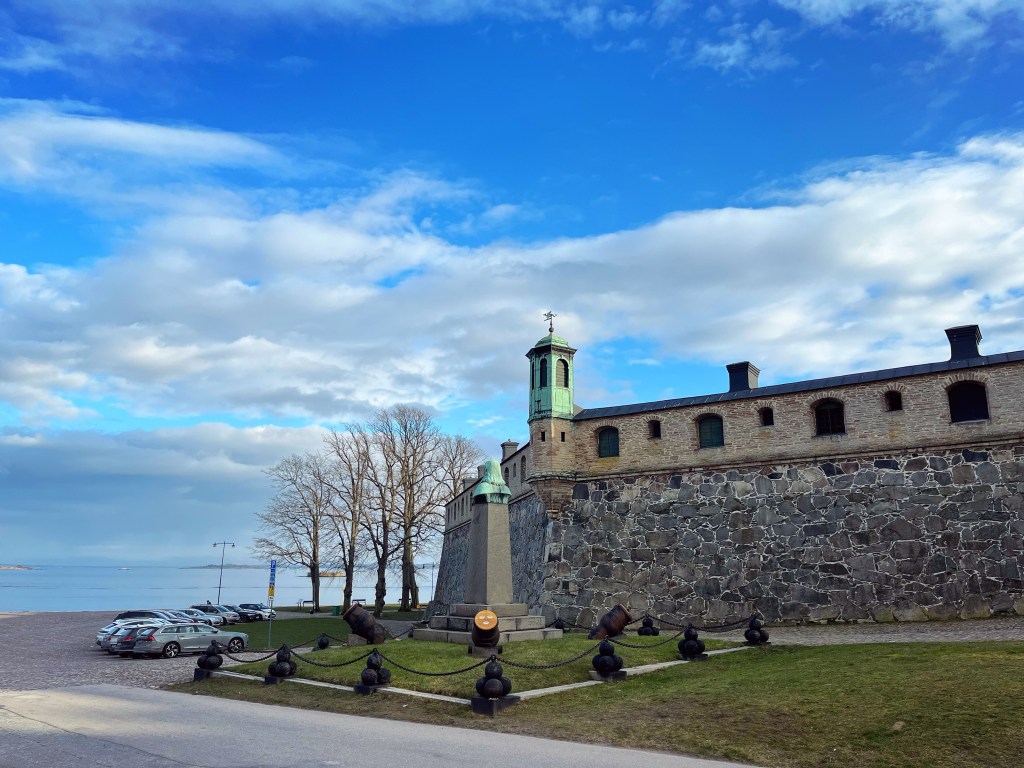 Mellan residenset och Bastion Aurora står en byst av Erik Dahlberg, en av arkitekterna bakom världsarvet.