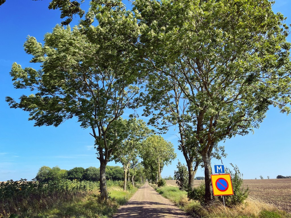 Vid Hardeberga kyrka stannar jag till för att plocka en sten ur skon. Strax därefter följer jag asfalterade vägar en liten bit och sedan vidare längs en grusväg igen till Billebjer naturreservat. Här följer jag en smalare grusväg genom skogen. På andra sidan skogen tar slätten vid igen. I den lilla byn Sjöstorp skådar jag en fin skånsk lada och strax därefter är jag åter på en asfaltsväg. Den följer jag tills jag hittar en skylt med en kartbild över Sveriges minsta nationalpark – Dalby Söderskog. Här följer jag en stig genom skogen som går parallellt med vägen fram till nationalparkens parkeringsplats.